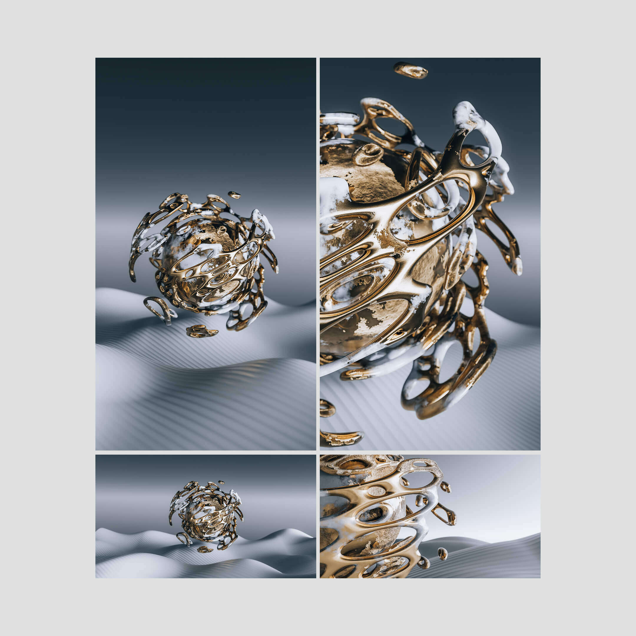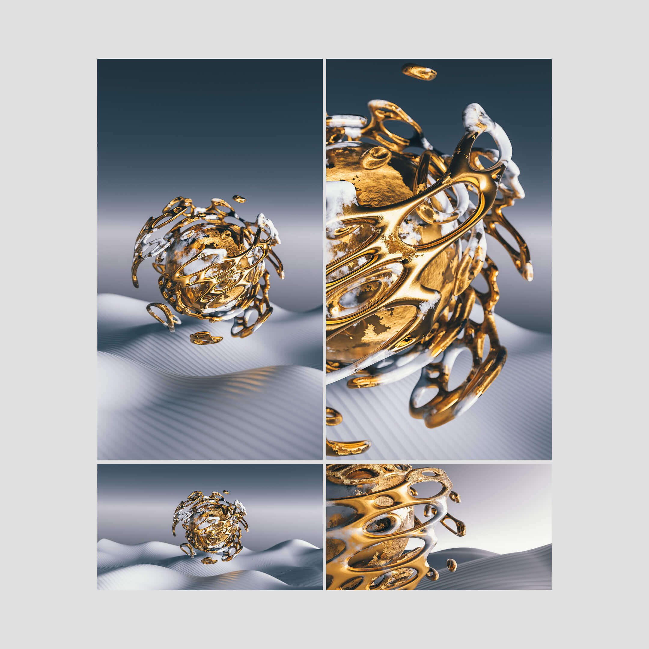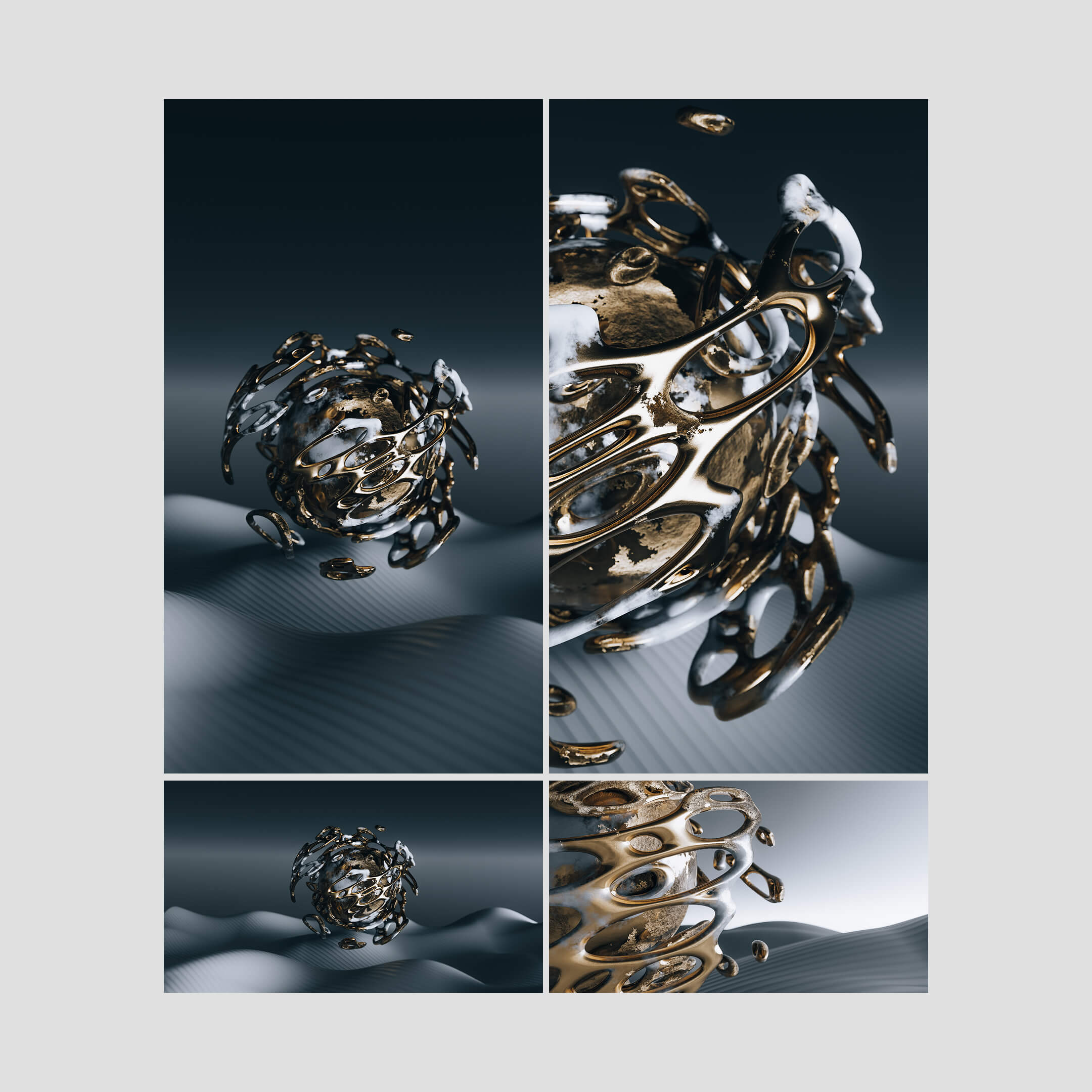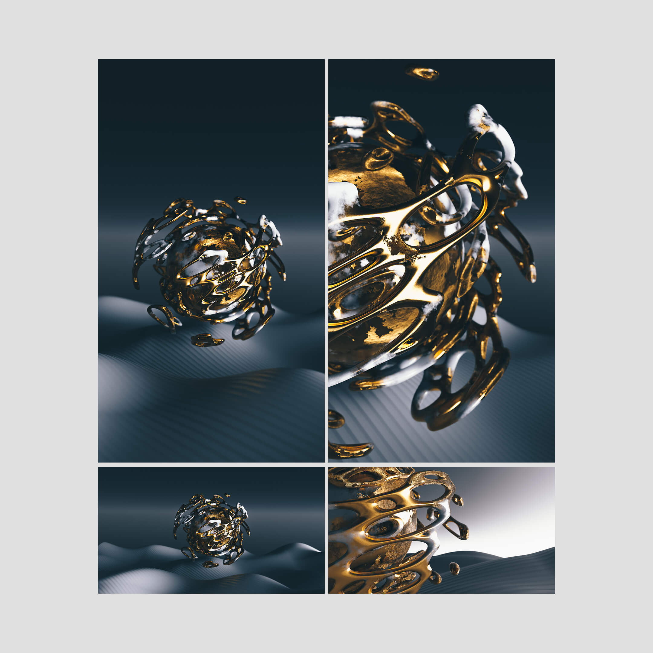 A bold collection of abstract forms, focused on depth, texture, and contrast. Designed to add visual interest while still working as a functional background across devices. Created in 3D using Blender, with an emphasis on lighting, materials, and sculptural detail.
