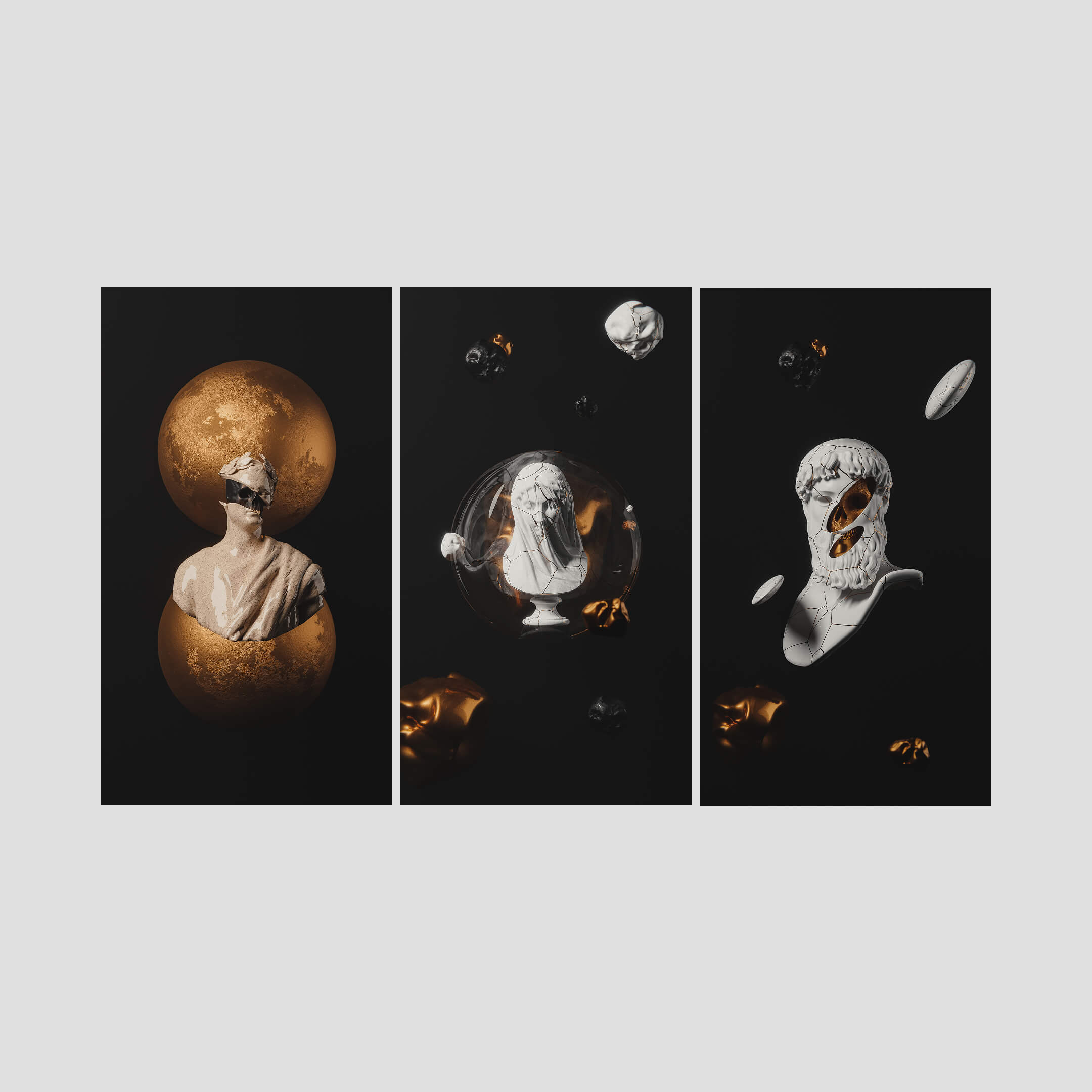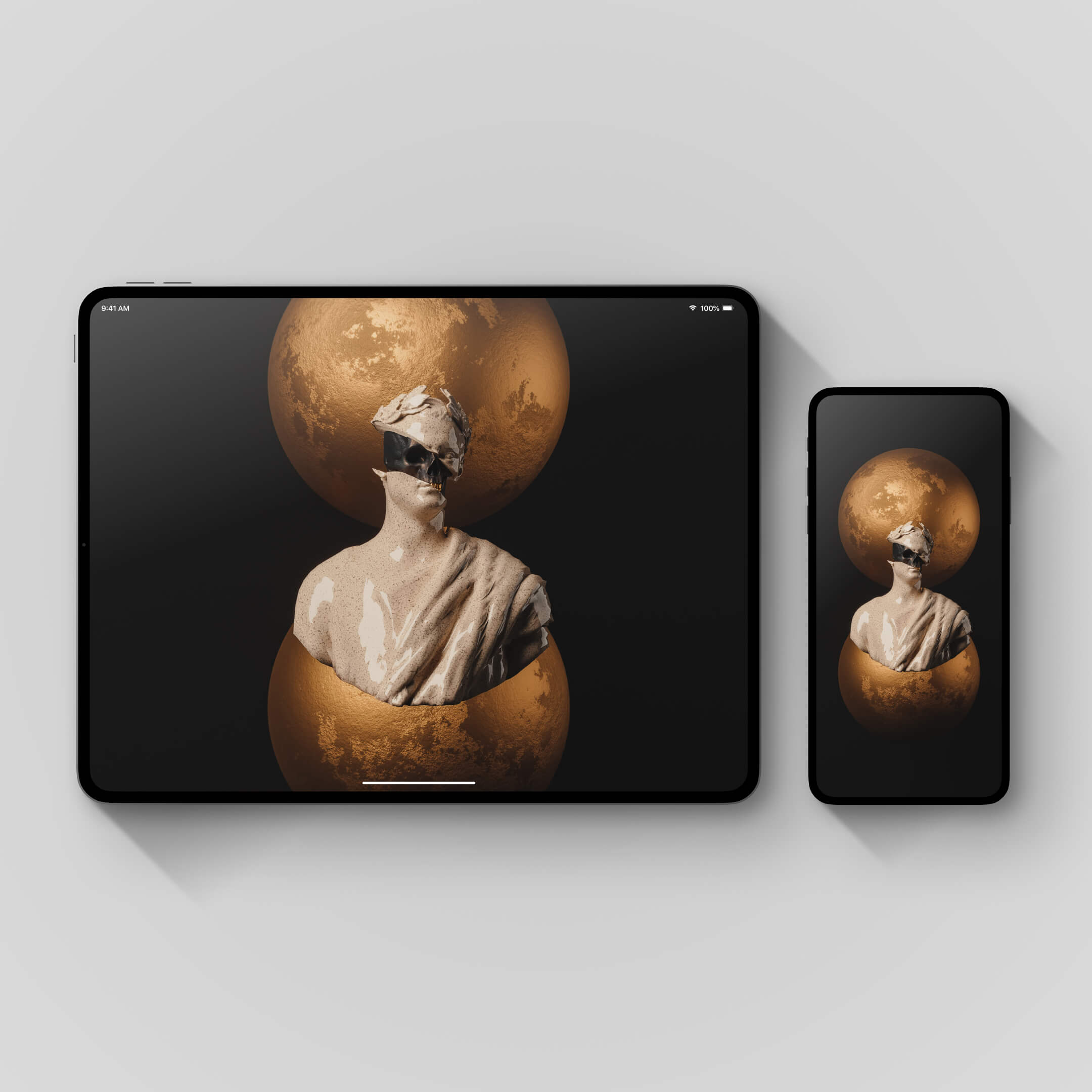 A sculptural collection inspired by classical statues and timeless forms, reimagined in a modern digital context. Light, shadow, and depth come together to create wallpapers that feel both historic and contemporary. Created in 3D using Blender, with a strong focus on form, texture, and cinematic lighting.