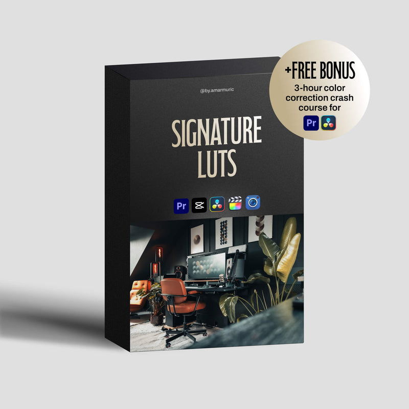 When you purchase the Signature LUT Collection, you’ll get a free 3-hour color correction crash course for DaVinci Resolve and Premiere Pro. We’ll cover proper setup for your camera, walk through each look, and grade 10 real clips together, step by step.